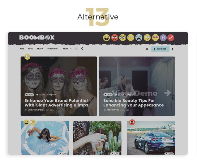 Boombox is a very flexible, feature-rich, fast, and beautiful WordPress theme for any entertainment websites. With a lot of unique features, it could help you to craft a professional website like the Buzzfeed, 9Gag, Giphy, etc. We’ve tested the theme for over two weeks and still haven’t found any serious issues with the product. So, you could go for it without thinking twice. The theme is available for just $59 on Themeforest.